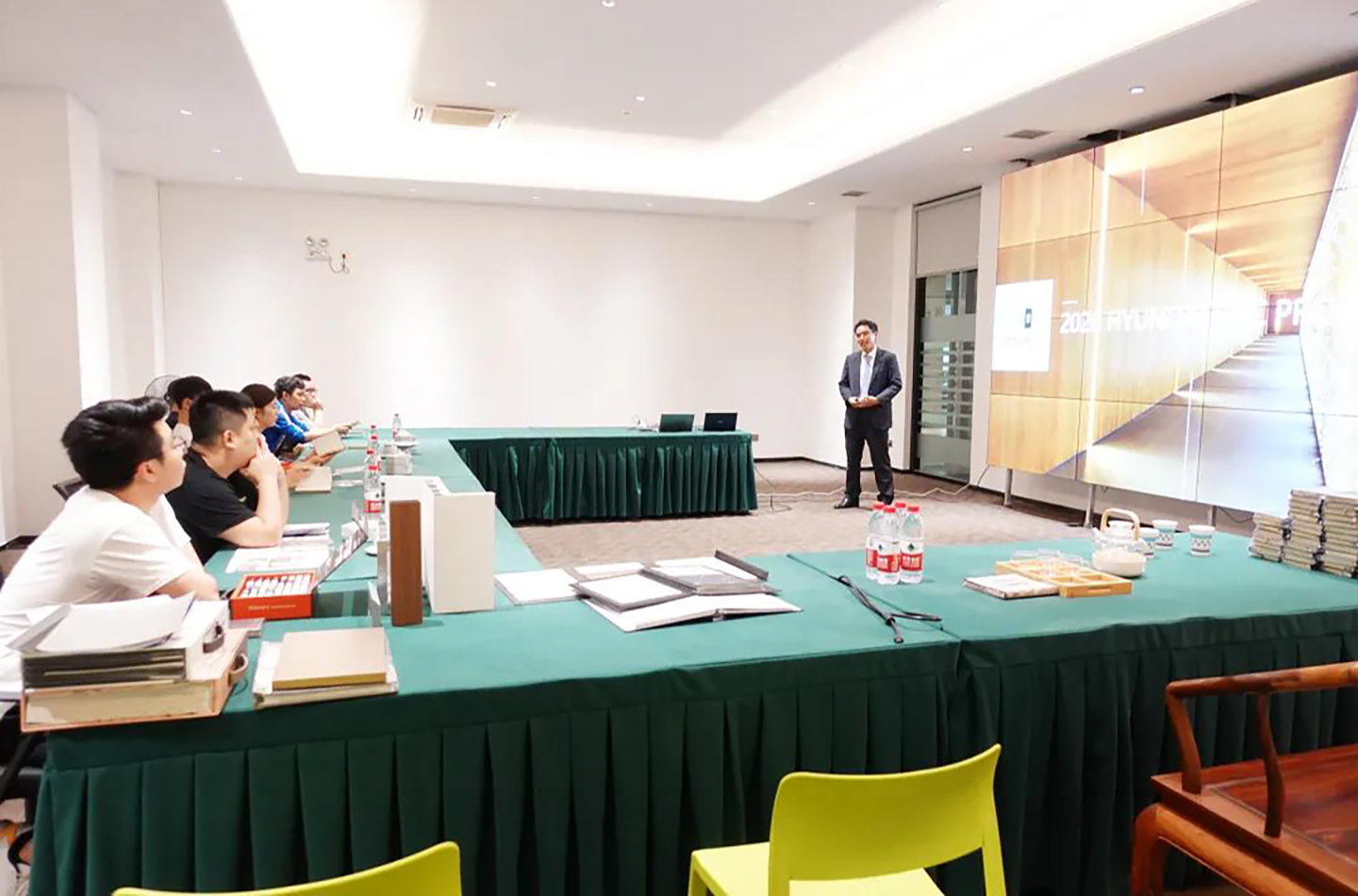 In this meeting, at first, Mr. Jiang Yibin introduced in more details the features and usage of Bodaq and Glossia PET products, Including the new wall system of Hyundai L&C to be launched recently. Hyundai L&C makes use of the original advantages to improve and upgrade to meet the market demand.