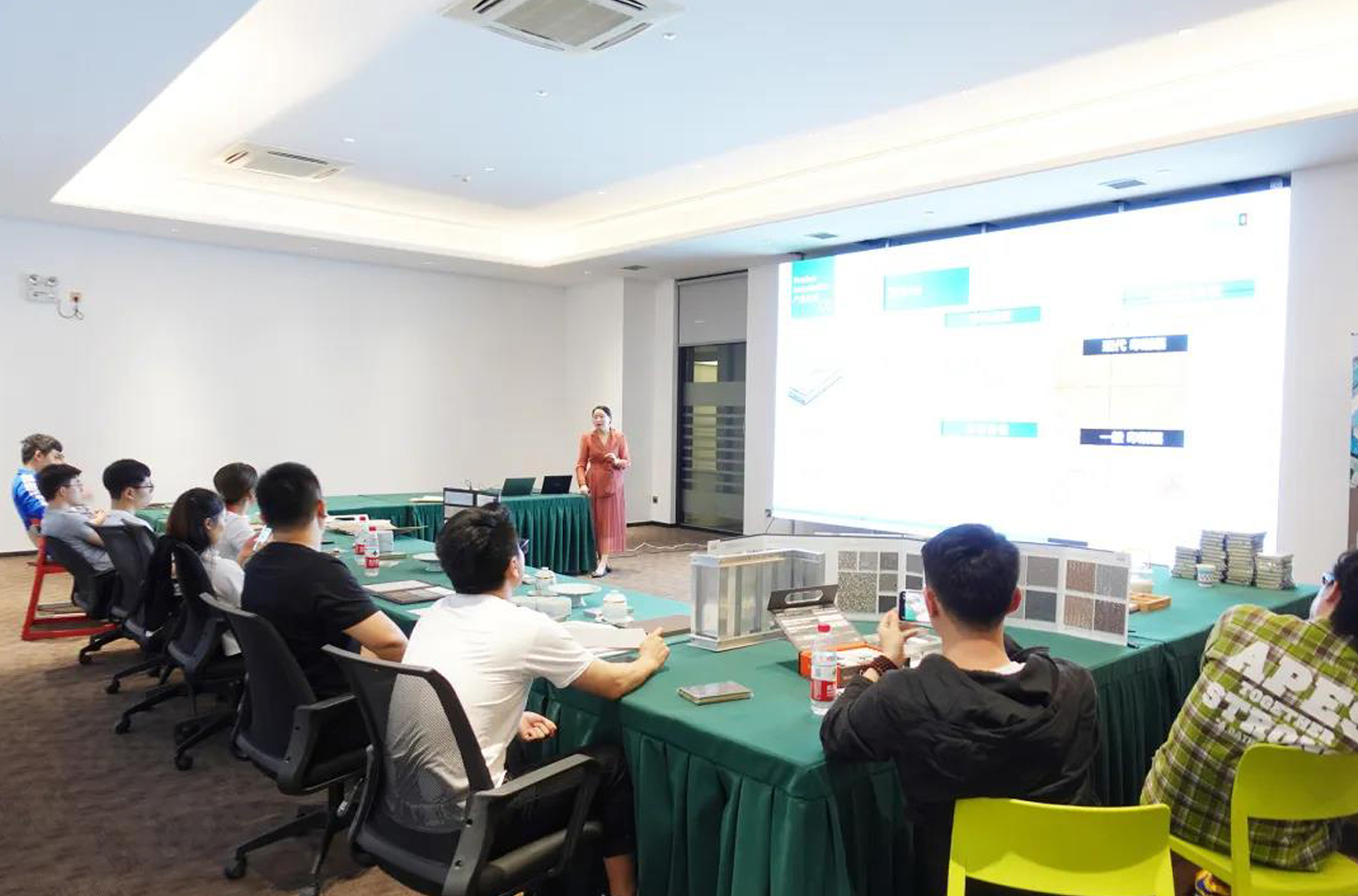 Mrs. FEI Yue introduced the production process, installation and maintenance procedures of Hyundai L&C flooring. Since 1980s, energy-saving and environment-friendly floor materials have been developed and put into production in 1985, which involves green and environment-friendly floorings used in commercial space and residential buildings. Various product functions bring PVC floorings materials into every aspect of life. Hyundai L&C ground material highlights several advantages such as durability, beauty and good use. It follows fresh style. The raw materials are of high quality. Its structure is stable and performance is perfect.